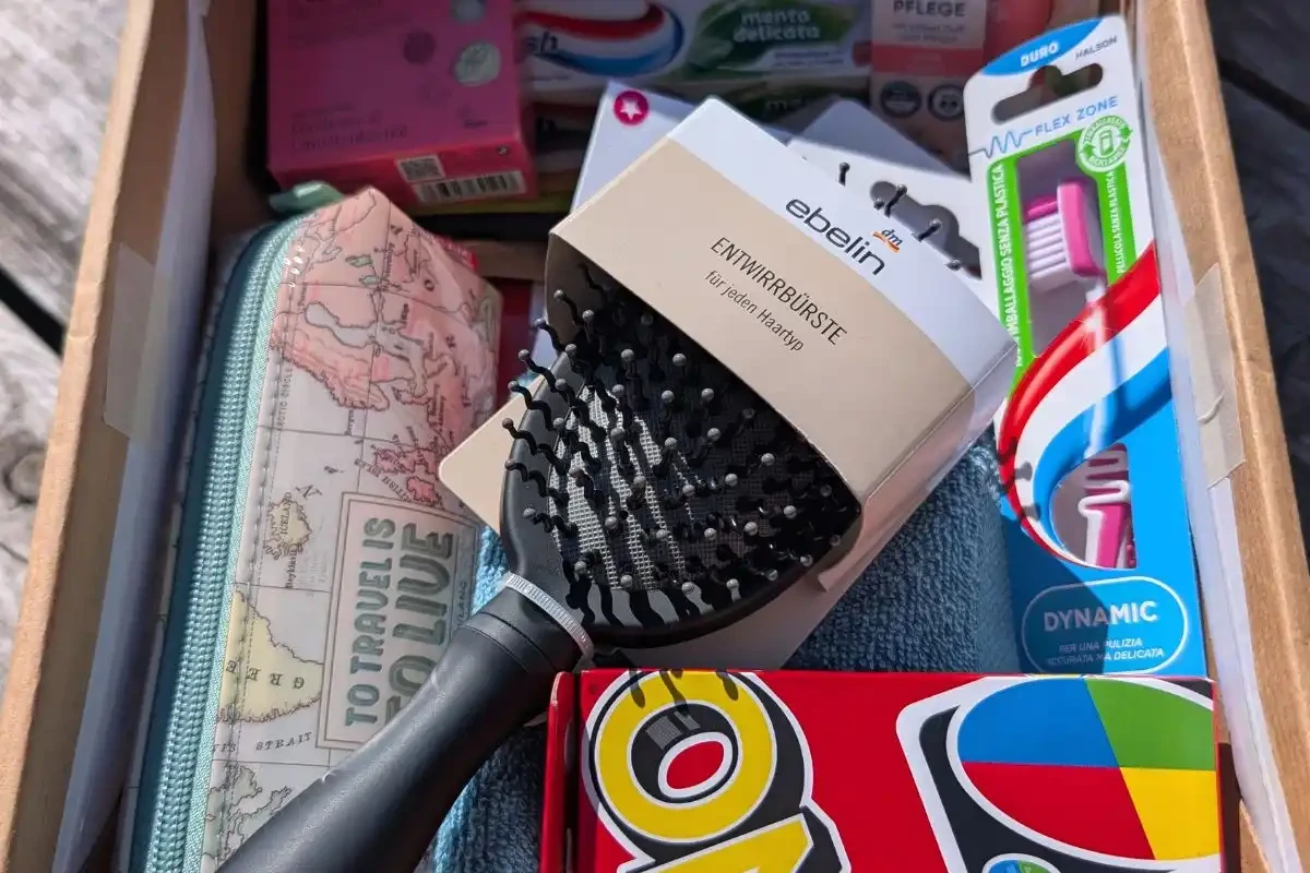 Unsere Kartons sind nun versandbereit. Gefüllt mit Spielsachen, Stiften, Hygieneartikeln – aber vor allem mit Herz.